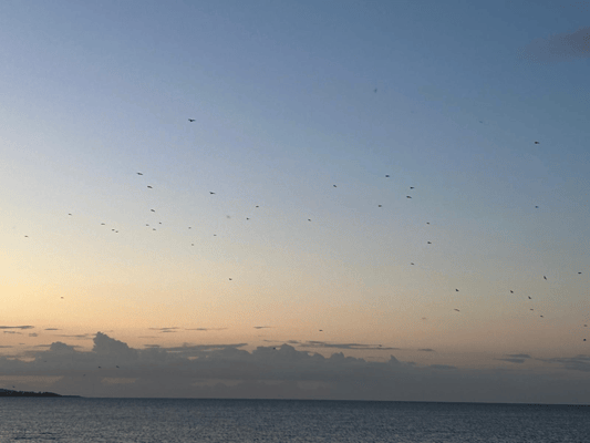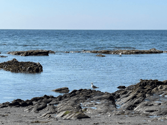 Anschliessend haben wir die tolle Sicht aus unserem Strandhaus genossen und dabei die vielen unterschiedlichen Vögel und die grossen Schiffe am Horizont beobachtet.